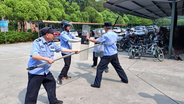 4月2日和4月3日,保卫处联合属地派出所,组织校卫队进行节前安全工作培训和演练,针对校卫队清明节假期期间校园巡逻、应急处突等工作进行部署,同时开展反恐防暴培训及最小应急单元拉动测试演练,此次培训分两校区进行,切实加强对防爆器械的使用进行讲解与演练,进一步加强我校安保队伍的安全防范意识,提升应急处置能力。