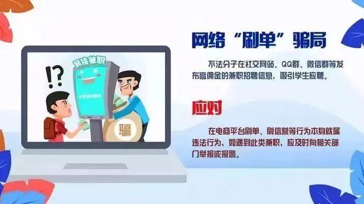 骗子以高薪诱惑学生,抓住涉世未深和急于挣钱的心理,让学生暑期在网上帮忙刷单。通常会在网上打着刷信誉、刷销量的旗号招聘“刷单”兼职,前几单可能还会“按照约定”返利,为的就是“放长线钓大鱼”,充分赢得你的信任,来诱骗你继续投入本金,直至血本无归。