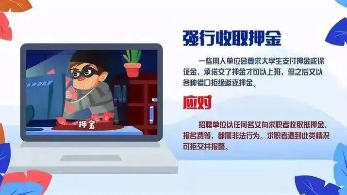一些用人单位会要求大学生支付押金或保证金,承诺交了押金才可以上班,但之后又以各种借口拒绝返还押金。