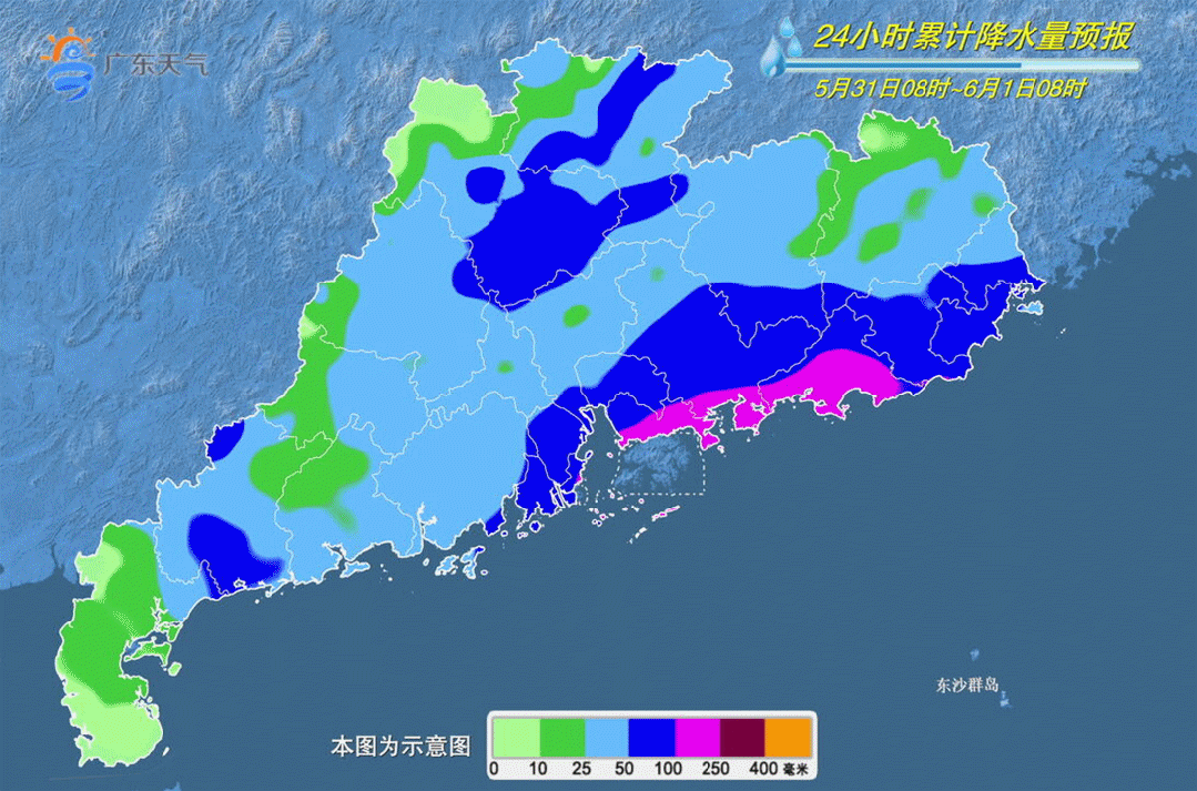 预计,5月31日至6月1日受热带低压北上影响,广州有一次暴雨天气过程。