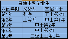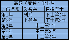 招收军士首次授予军衔,比照同年度部队选取的军士进行,其中招收的普通高等学校毕业生,其高中(中职)毕业后在国家规定学制内在校就读的年数视同服现役时间。